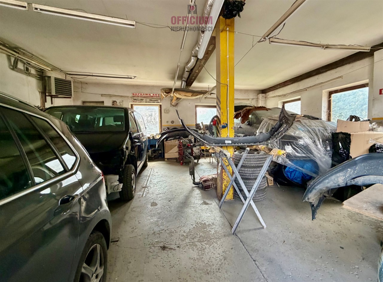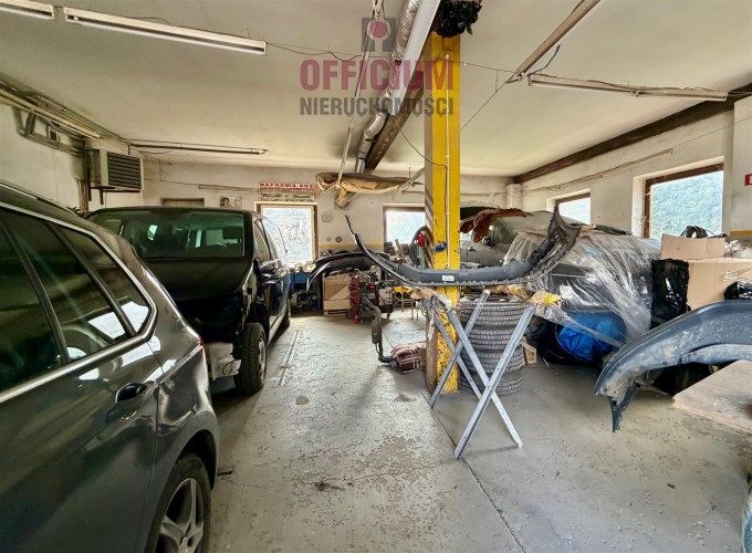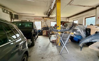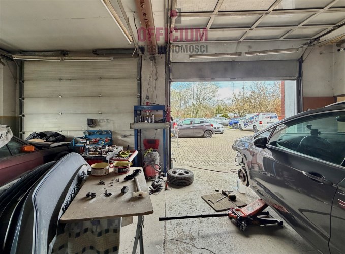 - hala dwunawowa diagnostyki i naprawy samochodów ( na 4 samochody osobowe ), biuro, kuchnia, toaleta z prysznicem, hala z komorą lakierniczą, kotłownia olejowa do ogrzewania komory lakierniczej. Hala o wysokości 4m, ogrzewana ( kocioł gazowy lub nagrzewnica 31 KW na gaz lub pompę ciepła).Dwie bramy garażowe o wymiarach 2,2m x 2,2m. Posadzka betonowa malowana