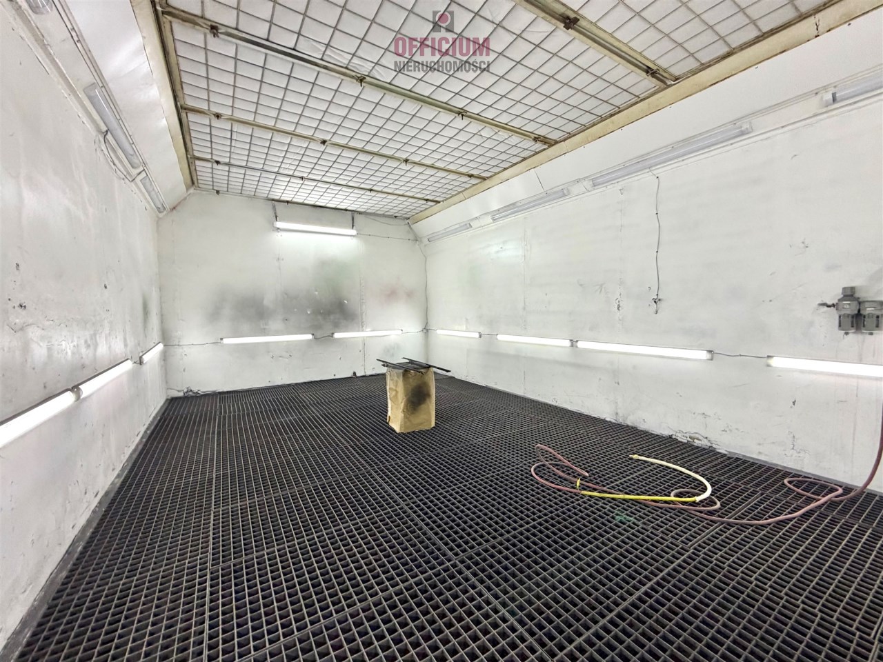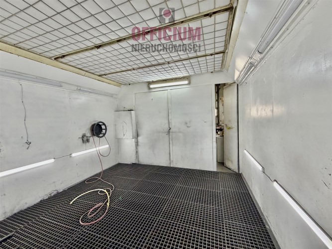 - hala z komorą lakierniczą, brama garażowa 2,2m x 2,2m , kotłownia olejowa do ogrzewania komory lakierniczej, wykonane czynne odciągi, przejście na hale diagnostyki i naprawy samochodów