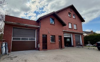 - hala dwunawowa diagnostyki i naprawy samochodów - 110,7 mkw ( na 4 samochody osobowe ), biuro 8,84 mkw, kuchnia 6,30 mkw, toaleta 3,05 mkw, szatnia z prysznicem 6,62 mkw, korytarz 7,57 mkw. Hala o wysokości 4m, ogrzewana ( kocioł gazowy lub nagrzewnica 31 KW na gaz lub pompę ciepła). Dwie bramy garażowe o wymiarach 2,2m x 2,2m. Posadzka betonowa malowana
