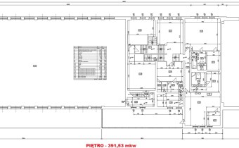 - PIĘTRO - łączna powierzchnia 391,52 mkw - obejmuje klimatyzowane 3-4 pokoje biurowe ( powierzchnia pokoi od 35-45-60 mkw ), stołówkę, kuchnię, łazienkę, szatnię , wc , pomieszczenie które można zaadoptować na mieszkanie służbowe.