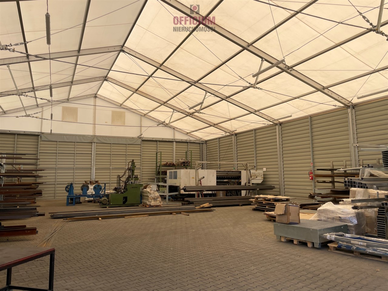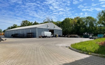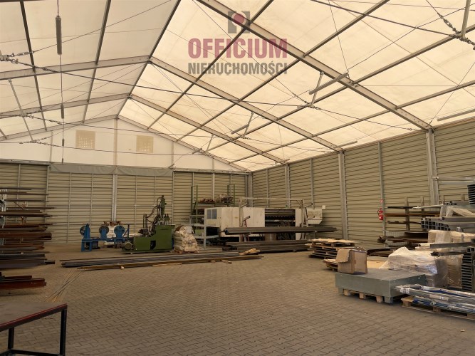 - hala nr 2 – 500,0 mkw p.u., wymiar 20,0m x 25,0 m x wys.9 m, przeznaczenie magazynowe, konstrukcja stalowa, ściany oraz dach kryte tkaniną poliestrową, posadzka wykonana z kostki brukowej