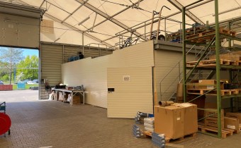 - hala nr 3 – 800,0 mkw p.u., wymiar 20,0m x 20,0 m x wys. 8,25 m, przeznaczenie magazynowe, konstrukcja stalowa, ściany oraz dach kryte tkaniną poliestrową, posadzka wykonana z kostki brukowej, antresola w rogu halu