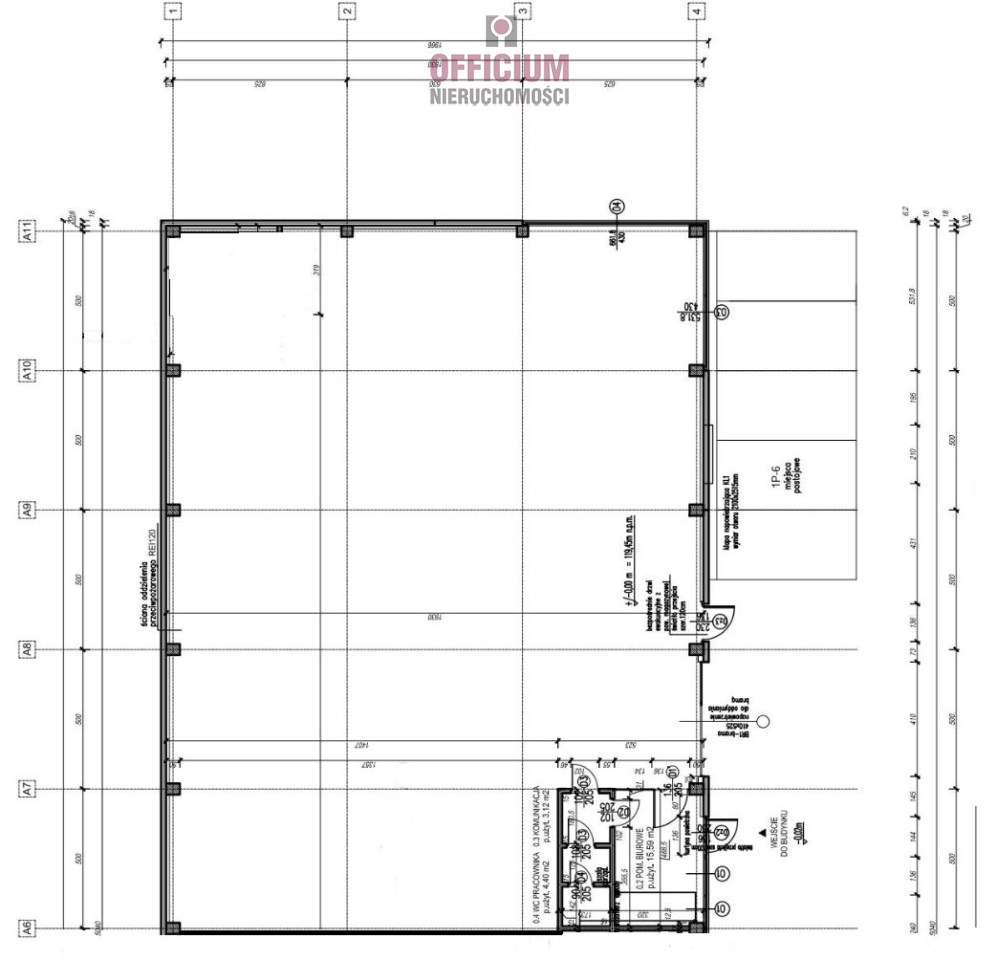 - moduł biurowo-socjalny w hali ( pokój biurowy, toaleta ) - 23 mkw - klimatyzacja w pokoju biurowym - wejście z ulicy oraz hali