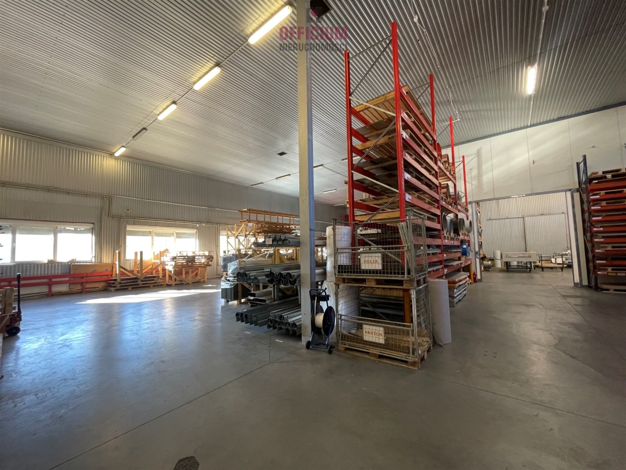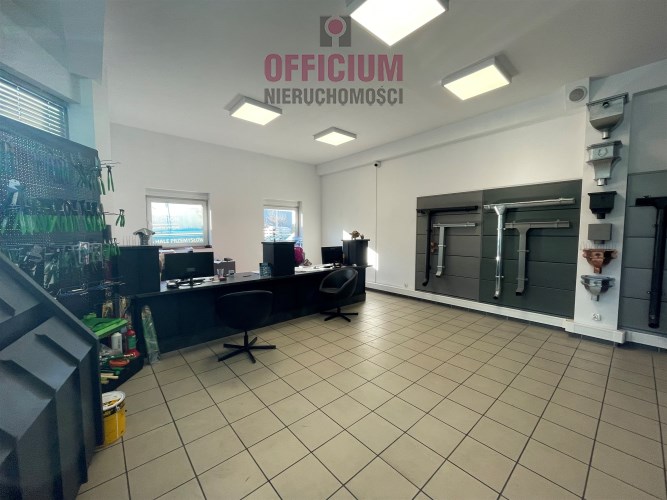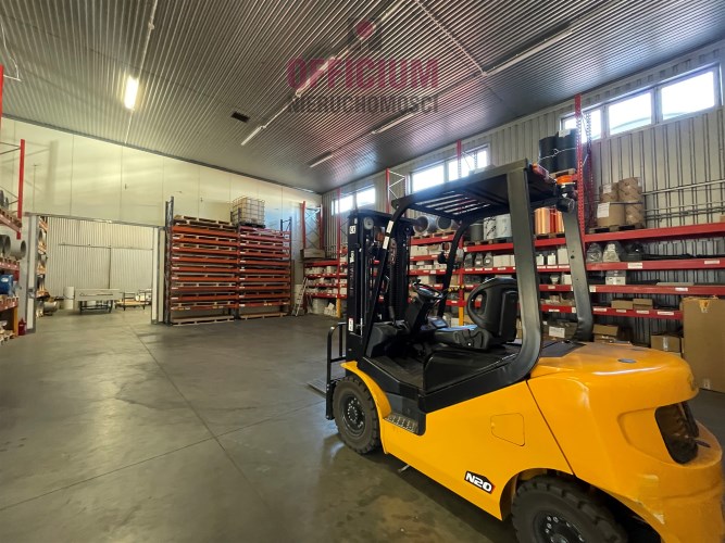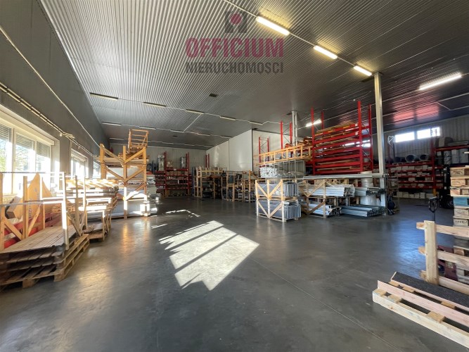 Samodzielny obiekt składający się z hali magazynowej o powierzchni użytkowej 650 mkw ( wysokość 6,3 m z dwiema bramami o wymiarach : szer. 4,3 m x wys 3,62 m oraz szer. 4,15 m x wys. 3,64 m) oraz powierzchni handlowo-biurowej.
