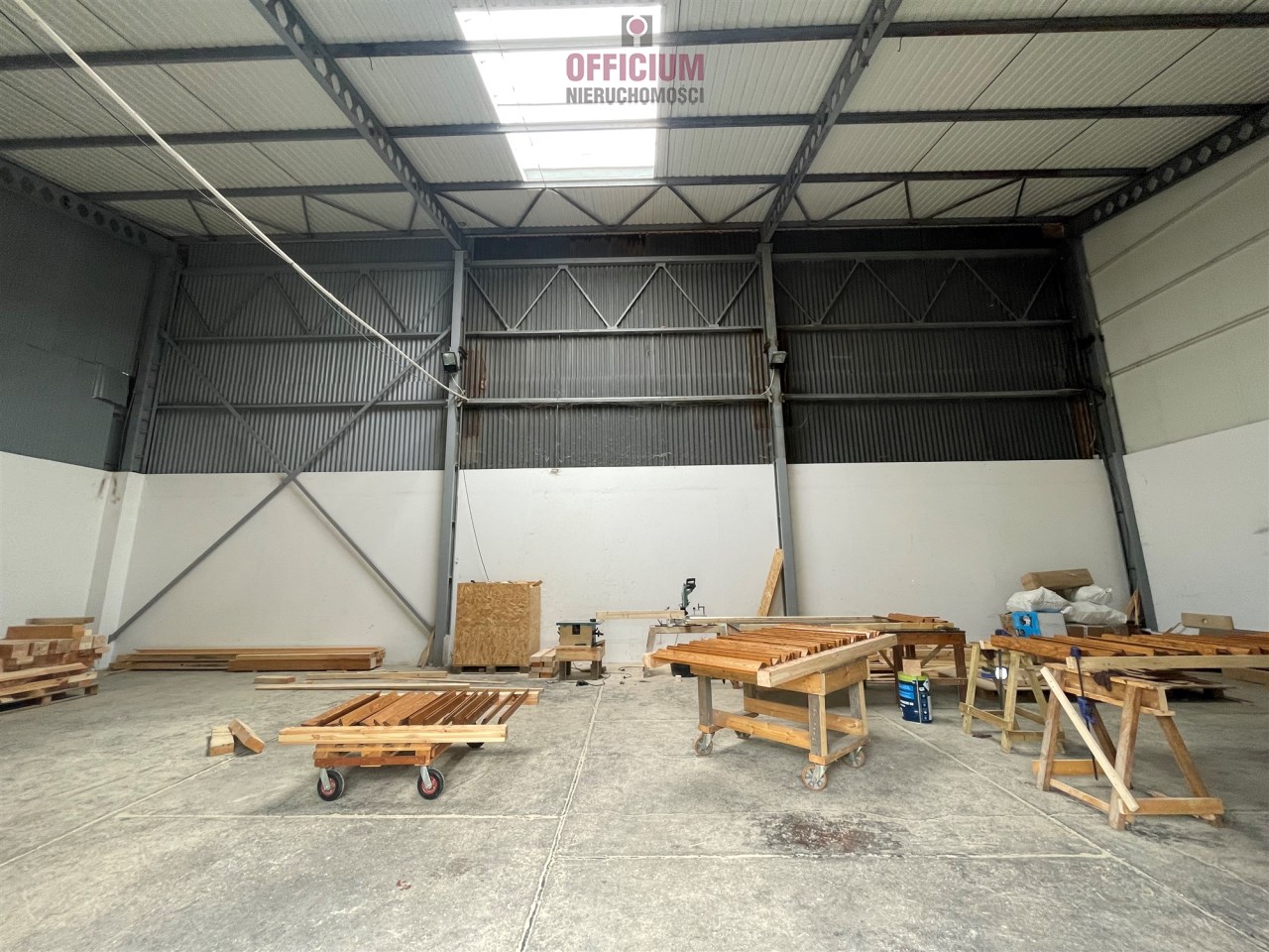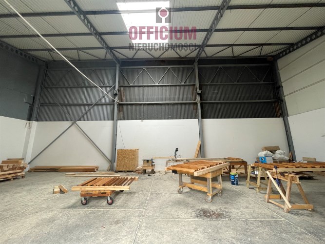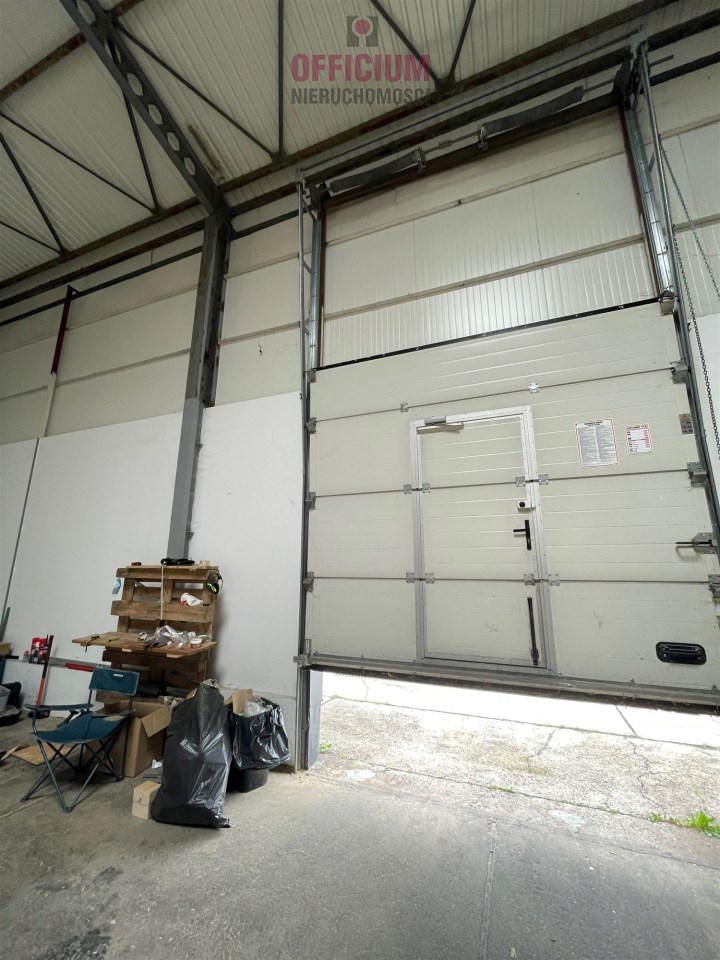 Hala nie ogrzewana, posadzka betonowa, drzwi segmentowe wys. 2,7 m x szer 2,9 m, poziom 0