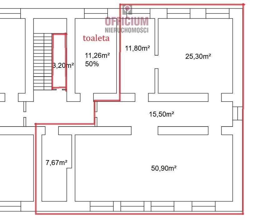 - udział 50% w toalecie z prysznicem 11,26 mkw x 50% = 5,9 mkw ( toaleta współdzielona z innym najemcą )