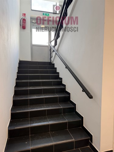 Lokal ma własne oddzielone wejście wykonane z profili aluminiowych malowanych na czarno oraz mlecznych przeszkleń, usytuowanie w budynku biurowym na poziomie -0,5, pełna wysokość pomieszczeń 2,5m, duże okna zapewniają bardzo dobre doświetlenie pomieszczeń.